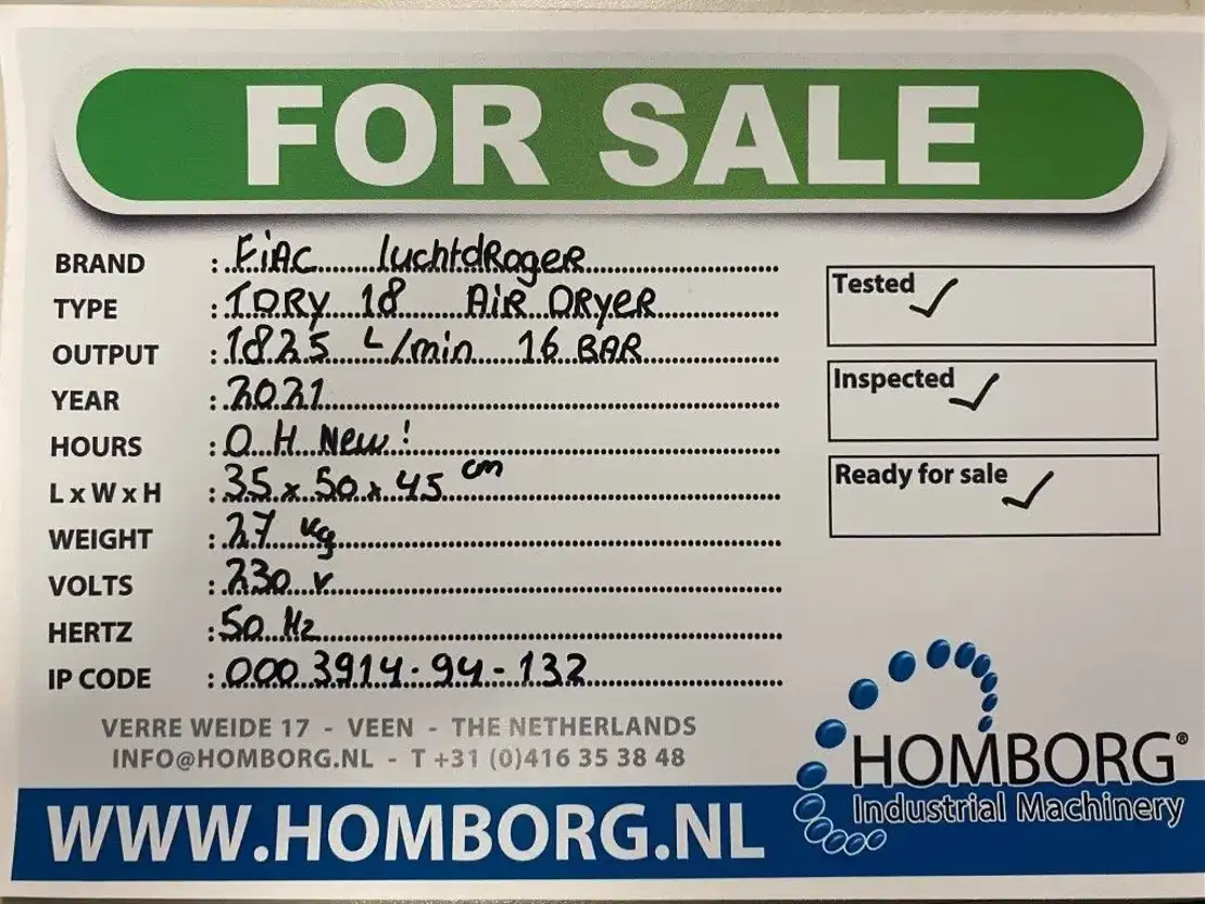 FIAC TDRY 18 TDRY 18 luchtdroger 1825 L / min 16 Bar Air Dryer