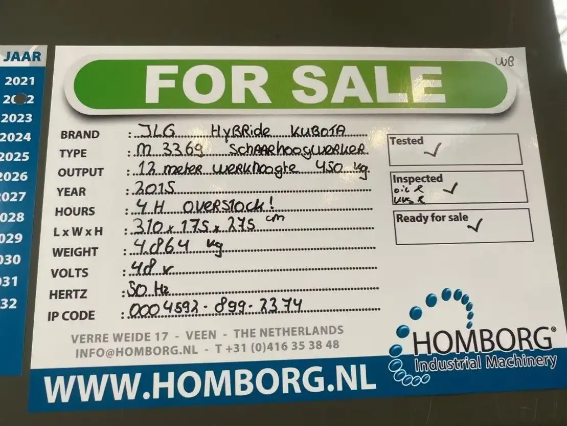 JLG M3369 Hybride Elektra / Diesel 12 meter werkhoogte Schaarhoogwerker Overstock 4 uur ! as New !