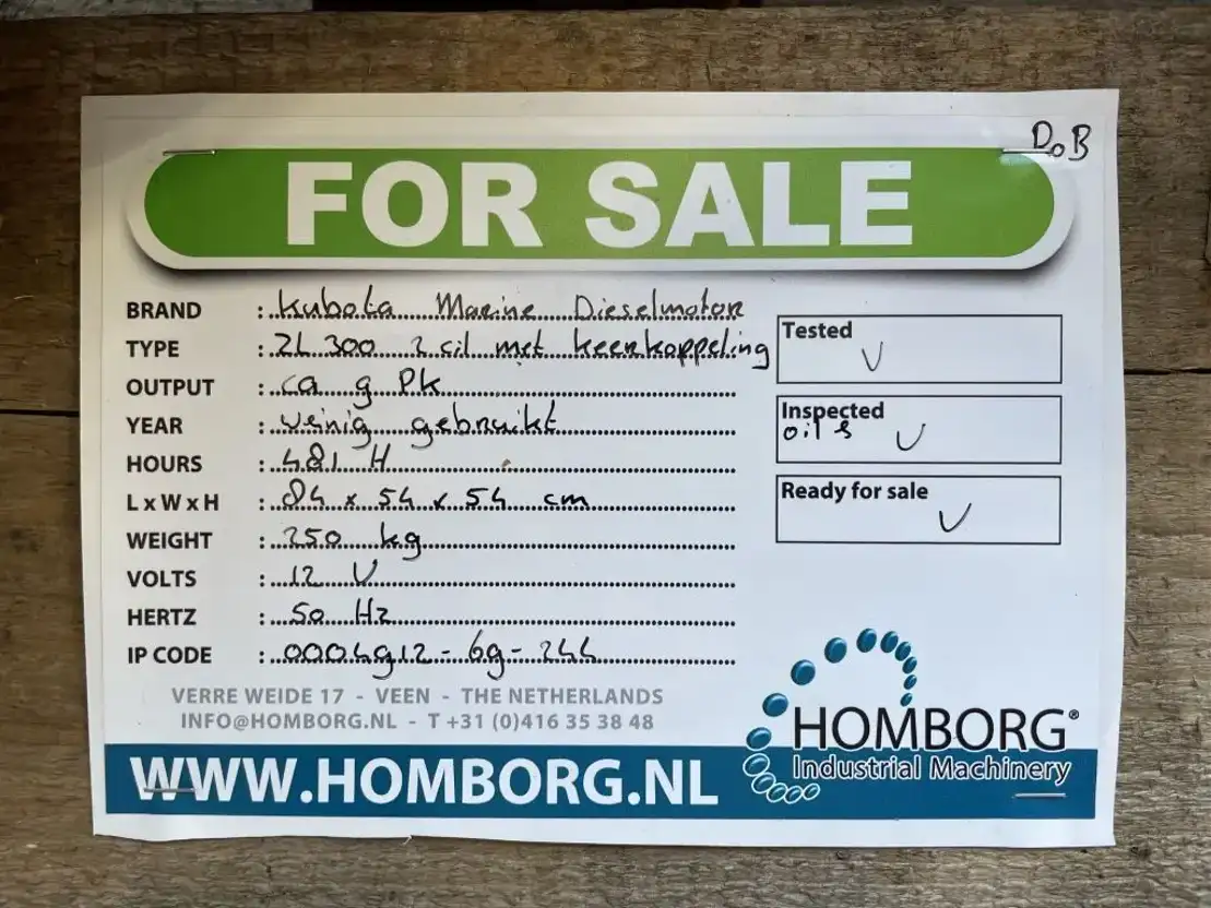 Kubota 2 cilinder 9 PK Marine Motor met ZF Keerkoppeling